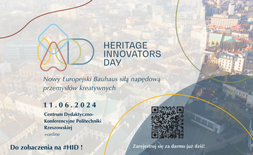 11 czerwca br. na Politechnice Rzeszowskiej odbędzie się Heritage Innovators Day – międzynarodowe wydarzenie promujące innowacyjne podejście do dóbr kultury w duchu Nowego Europejskiego Bauhausu.