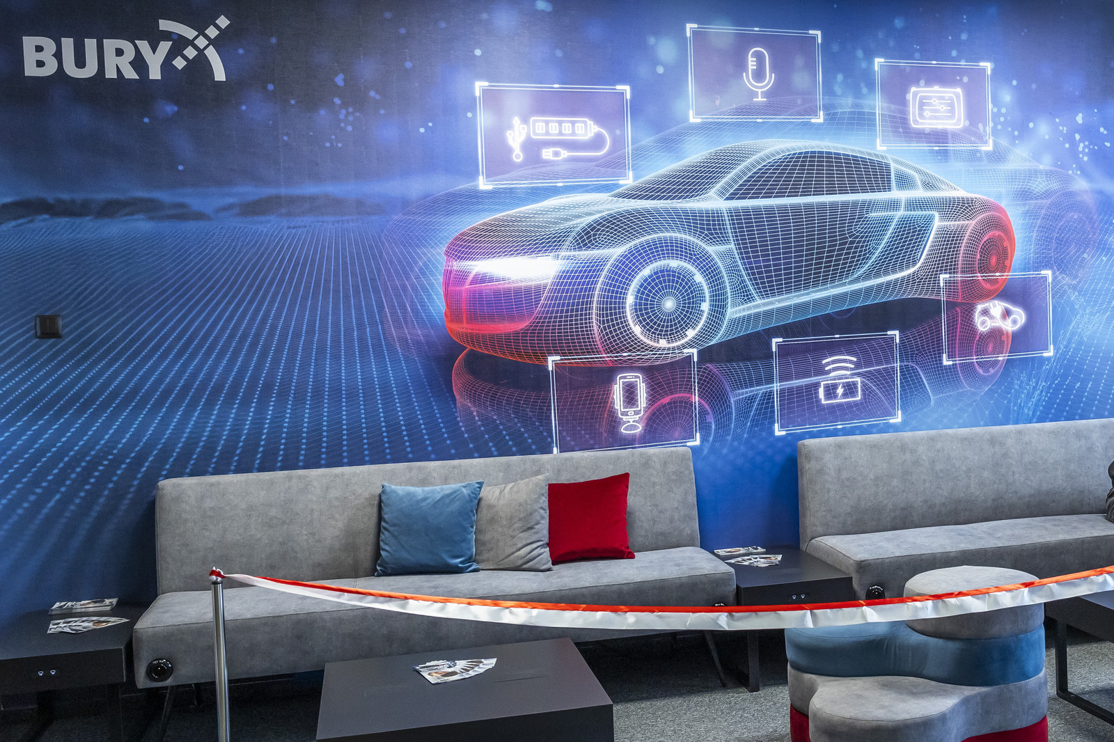 Strefa zawiera zestaw wypoczynkowy składający się z dwóch dużych sof, pięciu stolików oraz dwóch puf. Stoliki zostały wyposażone łącznie w siedem zestawów do ładowania indukcyjnego smartfonów oraz siedem zestawów HUB do ładowania przewodowego (USB). Sofy posiadają gniazda elektryczne 230 V umożliwiające podłączenie laptopów lub ładowarek przewodowych. Na ścianie strefy umieszczono fototapetę z grafiką pojazdu oraz logo firmy Bury sp. z.o.o.
