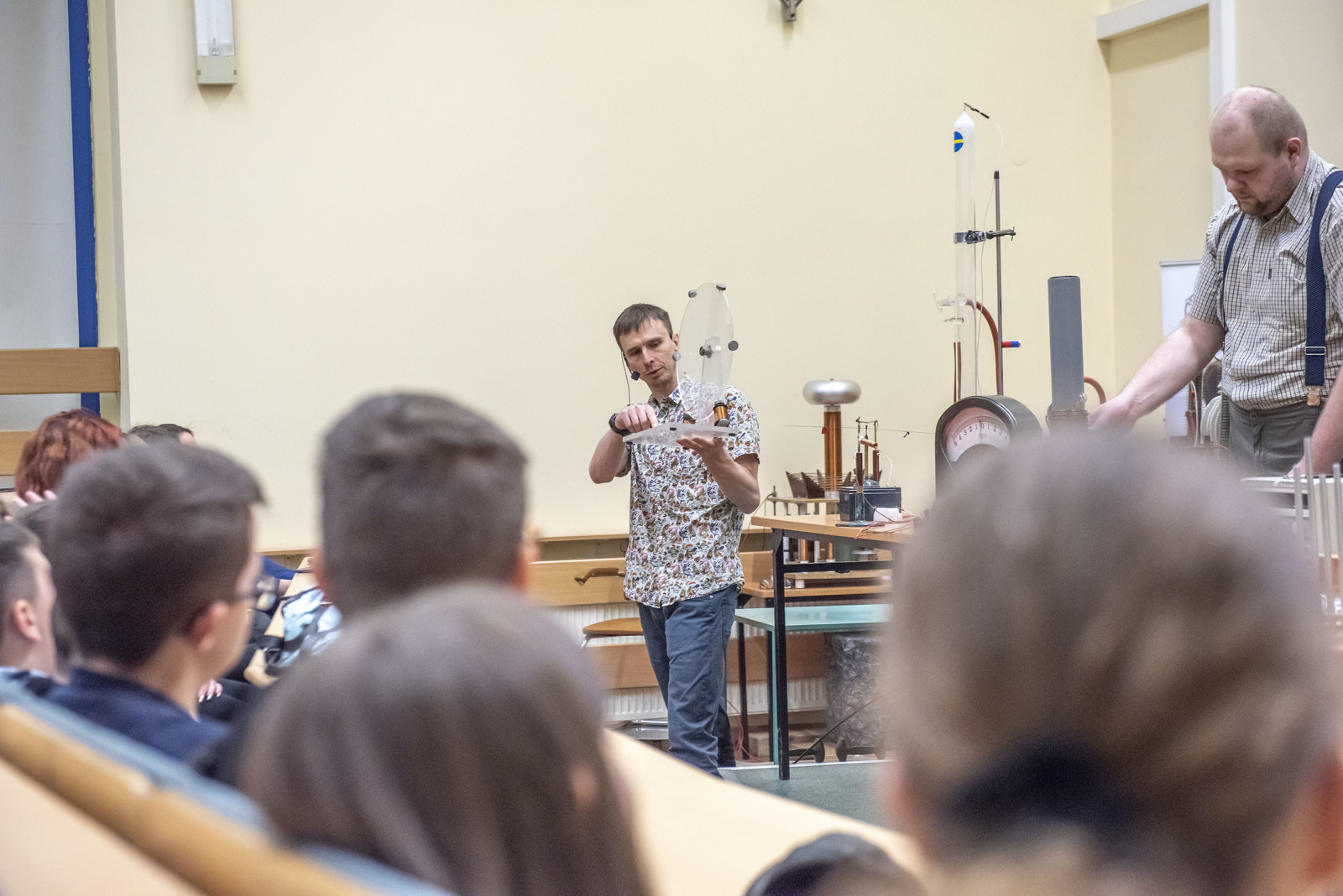 Program składał się z czterech bloków tematycznych. O zasadach zachowania opowiadał oraz przedstawił doświadczania dr inż. Łukasz Dubiel. W drugim bloku mgr inż. Magdalena Kulig przeprowadziła doświadczenia związane z ciśnieniem. W kolejnym module pokazów mgr Paweł Wnuk i inż. Karol Karpowicz (Instytut Fizyki UMCS w Lublinie) zaprezentowali doświadczenia związane z elektromagnetyzmem. Na koniec dr Jan Mamczur opowiedział o falach i akustyce – ta część pokazów została zakończona występem muzycznym. Nad organizacją pokazów czuwali dr hab. inż. Tomasz Więcek oraz Lidia Wertejuk.